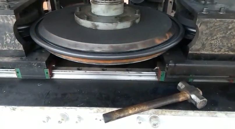 2、“預(yù)彎系統(tǒng)”根據(jù)所要求的彎邊直徑,對工件邊緣施力預(yù)彎。