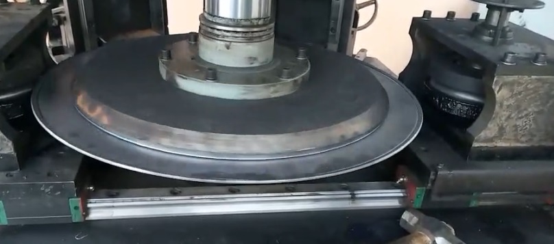3、“初次彎邊”將圓盤需要卷成圓管的周長一次彎夠,工件的邊緣先彎成約180o的圓弧。